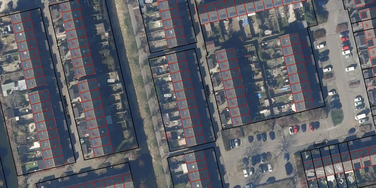 Het perceel waarop Wever 16 staat heeft een oppervlakte van 1286 m². Dit is een zeer groot perceel. De perceeloppervlakte wordt geregistreerd door het Kadaster. Gedetailleerde informatie over de maten van dit perceel kunt u vinden in het rapport Kadastrale kaart met maatvoering van Wever 16.