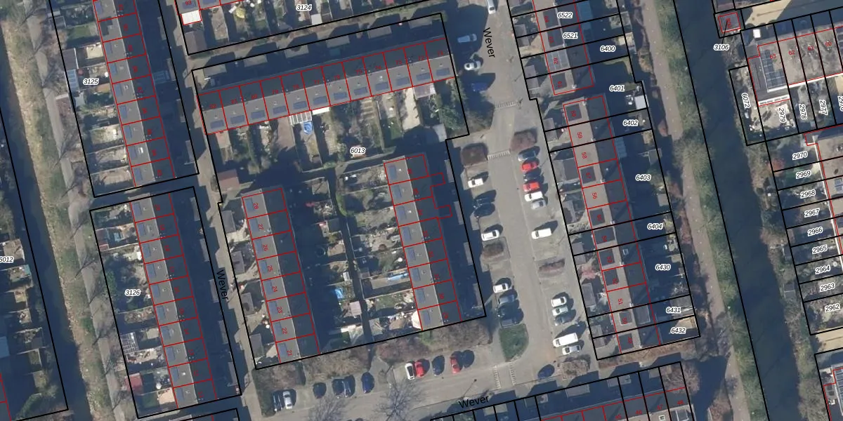 Het perceel waarop Wever 34 staat heeft een oppervlakte van 4205 m². Dit is een zeer groot perceel. De perceeloppervlakte wordt geregistreerd door het Kadaster. Gedetailleerde informatie over de maten van dit perceel kunt u vinden in het rapport Kadastrale kaart met maatvoering van Wever 34.