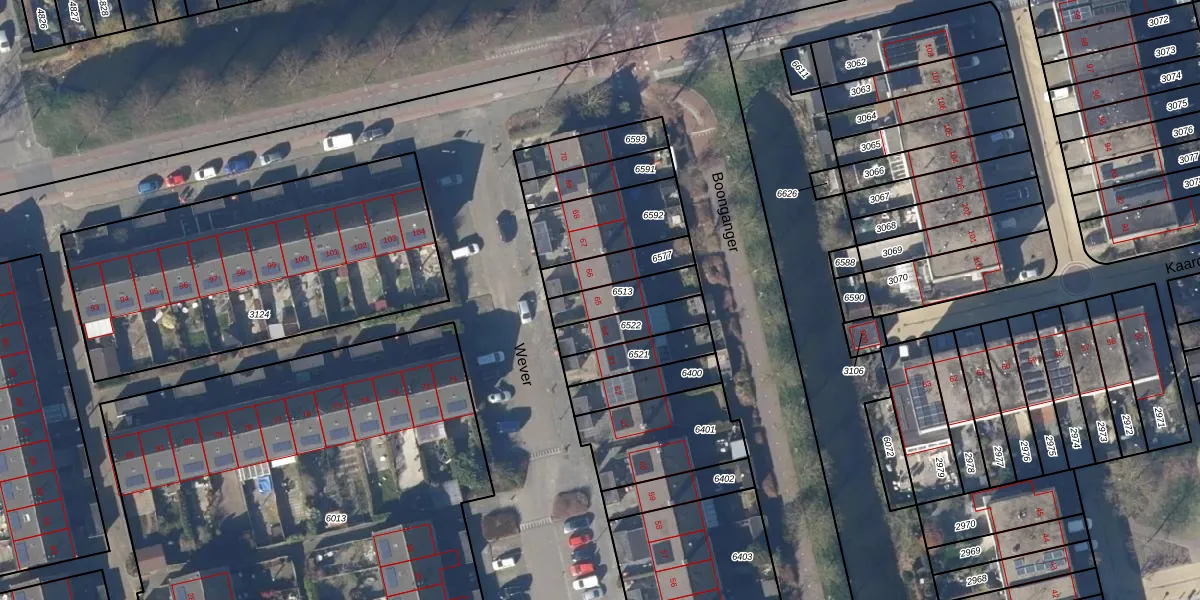 Het perceel waarop Wever 65 staat heeft een oppervlakte van 127 m². Dit is een middelgroot perceel. De perceeloppervlakte wordt geregistreerd door het Kadaster. Gedetailleerde informatie over de maten van dit perceel kunt u vinden in het rapport Kadastrale kaart met maatvoering van Wever 65.