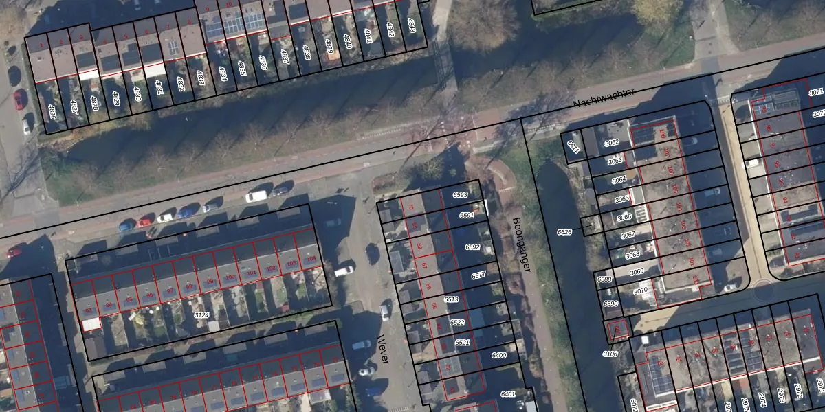 Gebruik de zoekbalk of klik op een perceel voor informatie over de adressen binnen dit perceel.