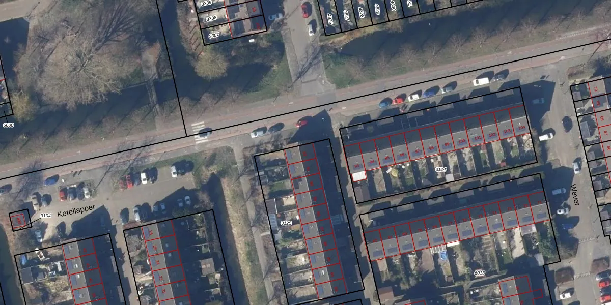 Het perceel waarop Wever 92 staat heeft een oppervlakte van 1287 m². Dit is een zeer groot perceel. De perceeloppervlakte wordt geregistreerd door het Kadaster. Gedetailleerde informatie over de maten van dit perceel kunt u vinden in het rapport Kadastrale kaart met maatvoering van Wever 92.