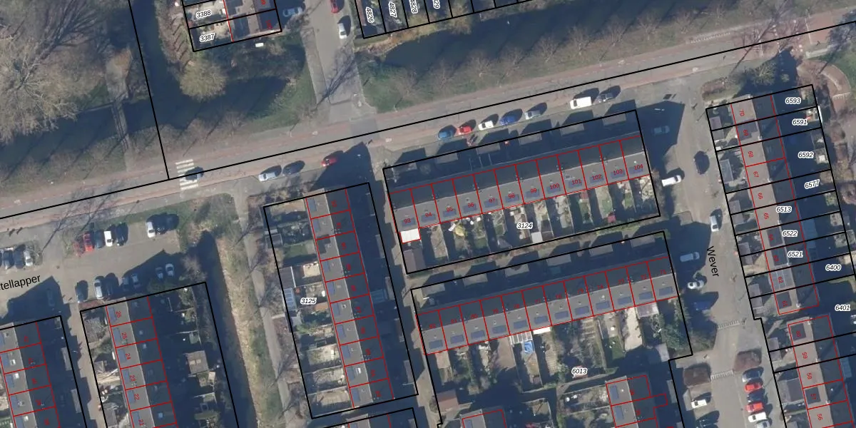 Het perceel waarop Wever 94 staat heeft een oppervlakte van 1542 m². Dit is een zeer groot perceel. De perceeloppervlakte wordt geregistreerd door het Kadaster. Gedetailleerde informatie over de maten van dit perceel kunt u vinden in het rapport Kadastrale kaart met maatvoering van Wever 94.
