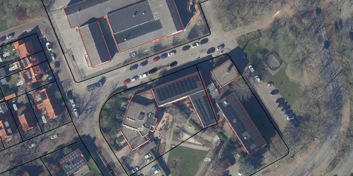 Het perceel waarop Wilhelminalaan 2 staat heeft een oppervlakte van 2463 m². Dit is een zeer groot perceel. De perceeloppervlakte wordt geregistreerd door het Kadaster. Gedetailleerde informatie over de maten van dit perceel kunt u vinden in het rapport Kadastrale kaart met maatvoering van Wilhelminalaan 2.