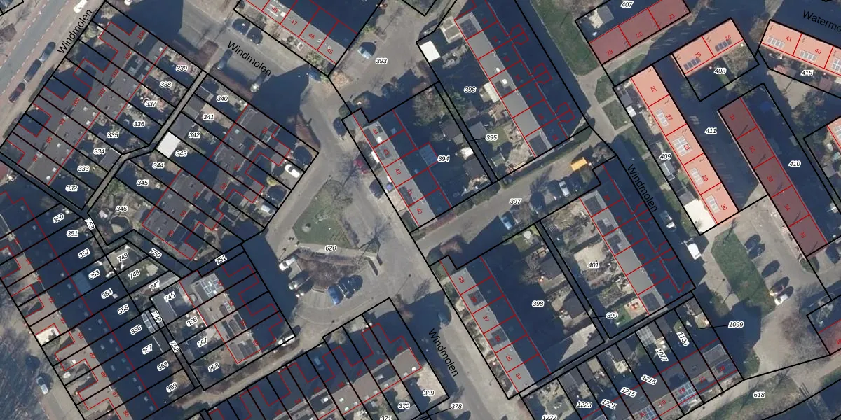 Het perceel waarop Windmolen 40 staat heeft een oppervlakte van 655 m². Dit is een groot perceel. De perceeloppervlakte wordt geregistreerd door het Kadaster. Gedetailleerde informatie over de maten van dit perceel kunt u vinden in het rapport Kadastrale kaart met maatvoering van Windmolen 40.