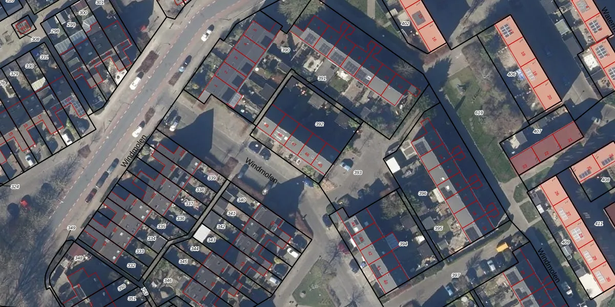 Het perceel waarop Windmolen 46 staat heeft een oppervlakte van 651 m². Dit is een groot perceel. De perceeloppervlakte wordt geregistreerd door het Kadaster. Gedetailleerde informatie over de maten van dit perceel kunt u vinden in het rapport Kadastrale kaart met maatvoering van Windmolen 46.