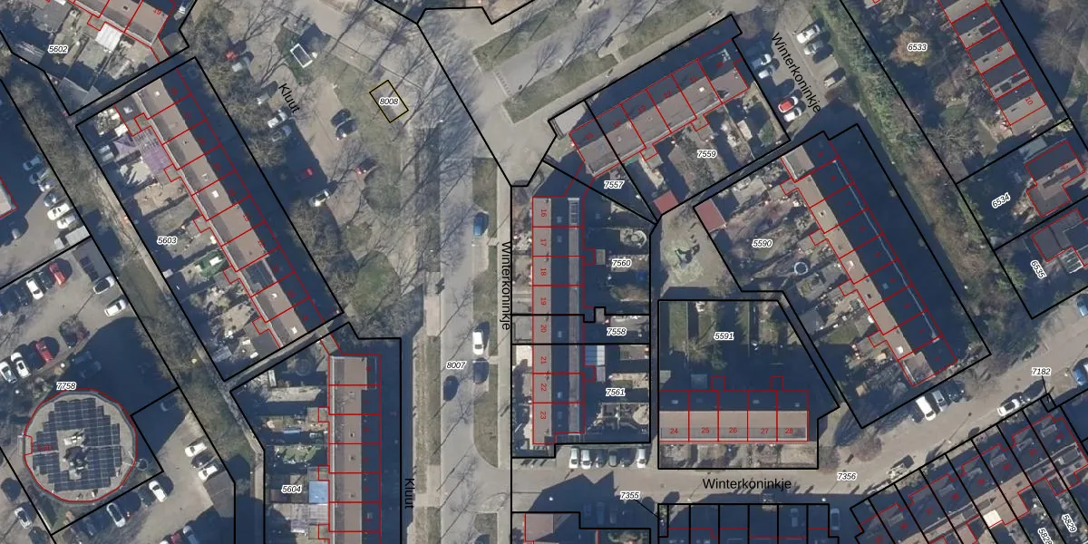 Winterkoninkje 18 is gelegen op kadastraal perceel HOO00D7560. Deze kadastrale aanduiding is uniek en wordt gebruikt door het Kadaster om eigendomsrechten en andere zakelijke rechten vast te leggen. Het perceel maakt onderdeel uit van de kadastrale gemeente Hoorn.