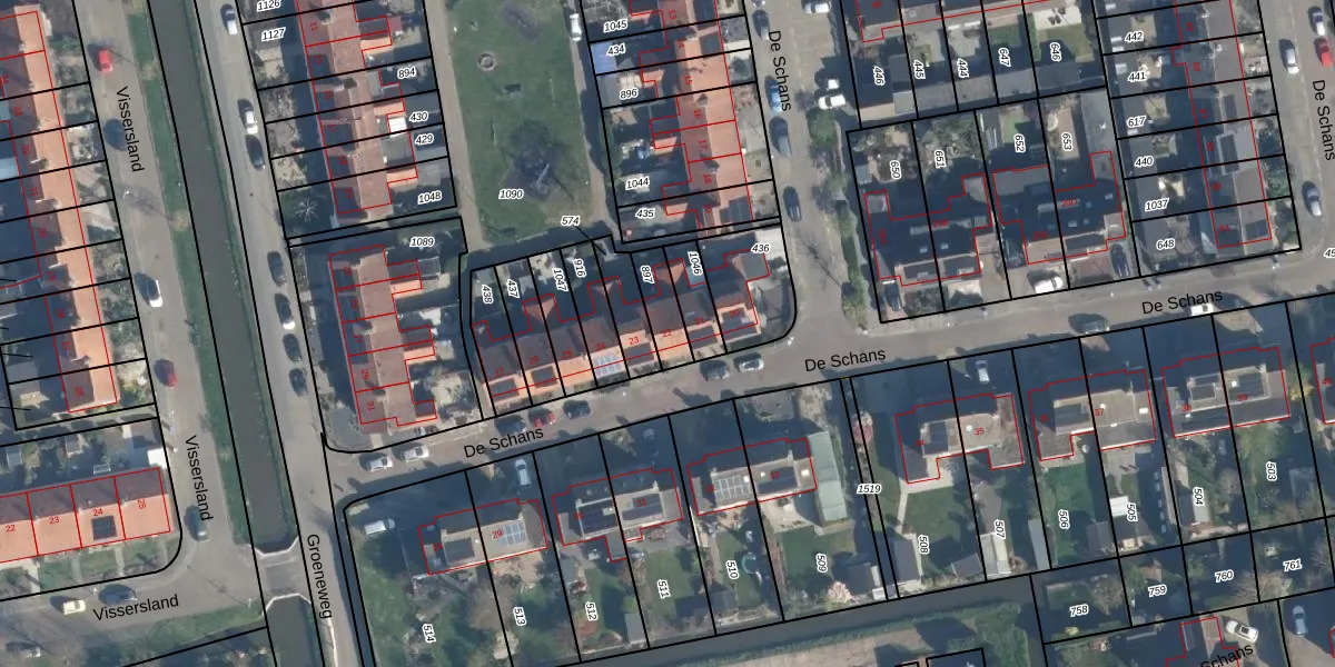 Het perceel waarop De Schans 22 staat heeft een oppervlakte van 92 m². Dit is een klein perceel. De perceeloppervlakte wordt geregistreerd door het Kadaster. Gedetailleerde informatie over de maten van dit perceel kunt u vinden in het rapport Kadastrale kaart met maatvoering van De Schans 22.