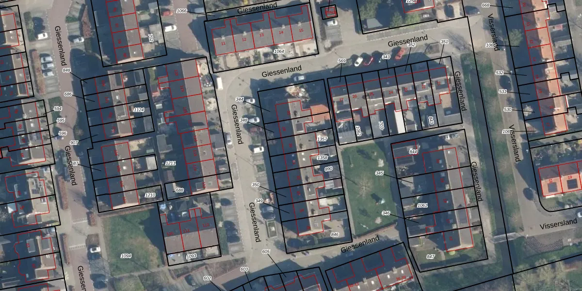 Giessenland 30 is gelegen op kadastraal perceel HNR00B1357. Deze kadastrale aanduiding is uniek en wordt gebruikt door het Kadaster om eigendomsrechten en andere zakelijke rechten vast te leggen. Het perceel maakt onderdeel uit van de kadastrale gemeente Hoornaar.