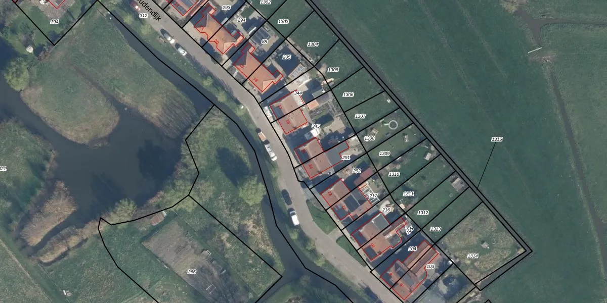 Het perceel waarop Oudendijk 15 staat heeft een oppervlakte van 379 m². Dit is een groot perceel. De perceeloppervlakte wordt geregistreerd door het Kadaster. Gedetailleerde informatie over de maten van dit perceel kunt u vinden in het rapport Kadastrale kaart met maatvoering van Oudendijk 15.