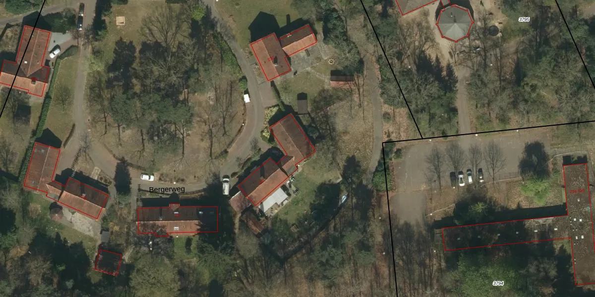 Het perceel waarop Bergerweg 23-e staat heeft een oppervlakte van 6,6 ha. Dit is een zeer groot perceel. De perceeloppervlakte wordt geregistreerd door het Kadaster. Gedetailleerde informatie over de maten van dit perceel kunt u vinden in het rapport Kadastrale kaart met maatvoering van Bergerweg 23-e.