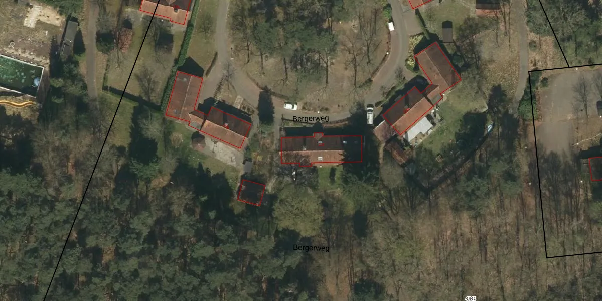 Het perceel waarop Bergerweg 23-f staat heeft een oppervlakte van 6,6 ha. Dit is een zeer groot perceel. De perceeloppervlakte wordt geregistreerd door het Kadaster. Gedetailleerde informatie over de maten van dit perceel kunt u vinden in het rapport Kadastrale kaart met maatvoering van Bergerweg 23-f.