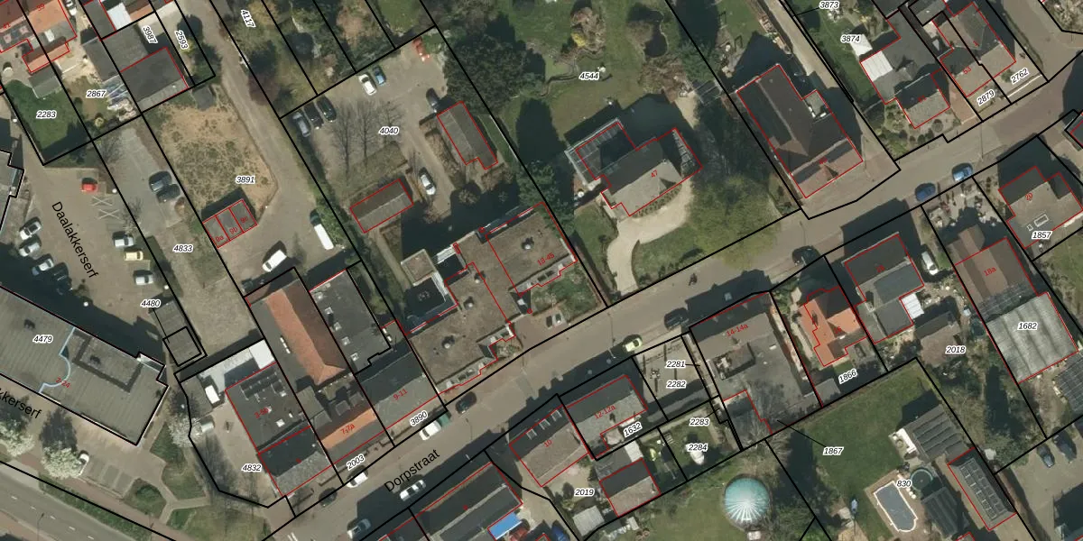 Het perceel waarop Dorpstraat 43 staat heeft een oppervlakte van 2090 m². Dit is een zeer groot perceel. De perceeloppervlakte wordt geregistreerd door het Kadaster. Gedetailleerde informatie over de maten van dit perceel kunt u vinden in het rapport Kadastrale kaart met maatvoering van Dorpstraat 43.