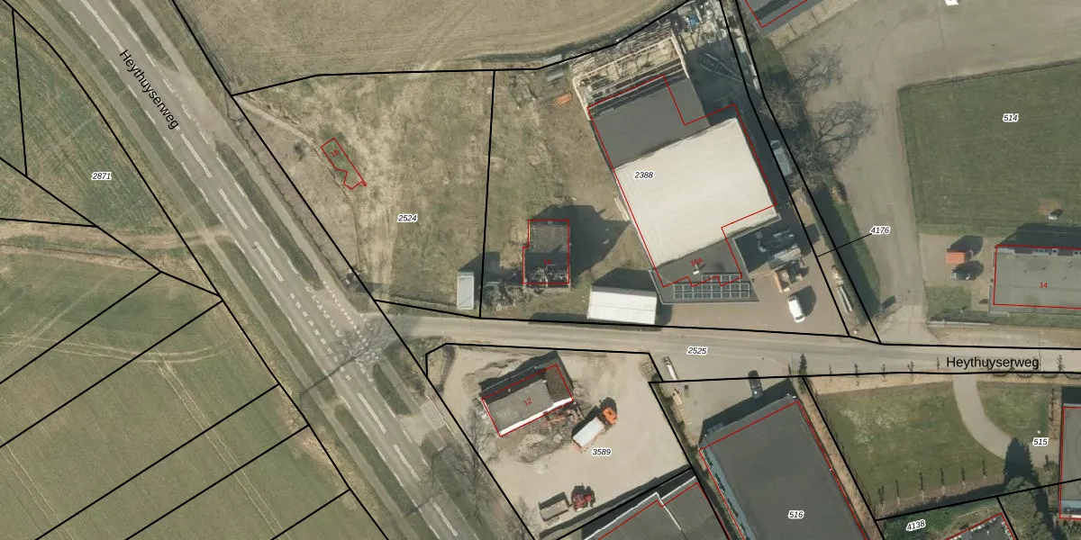 Het perceel waarop Heythuyserweg 16 staat heeft een oppervlakte van 3065 m². Dit is een zeer groot perceel. De perceeloppervlakte wordt geregistreerd door het Kadaster. Gedetailleerde informatie over de maten van dit perceel kunt u vinden in het rapport Kadastrale kaart met maatvoering van Heythuyserweg 16.