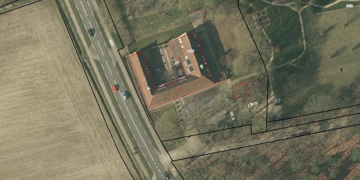 Het perceel waarop Heythuyserweg 40 staat heeft een oppervlakte van 6910 m². Dit is een zeer groot perceel. De perceeloppervlakte wordt geregistreerd door het Kadaster. Gedetailleerde informatie over de maten van dit perceel kunt u vinden in het rapport Kadastrale kaart met maatvoering van Heythuyserweg 40.