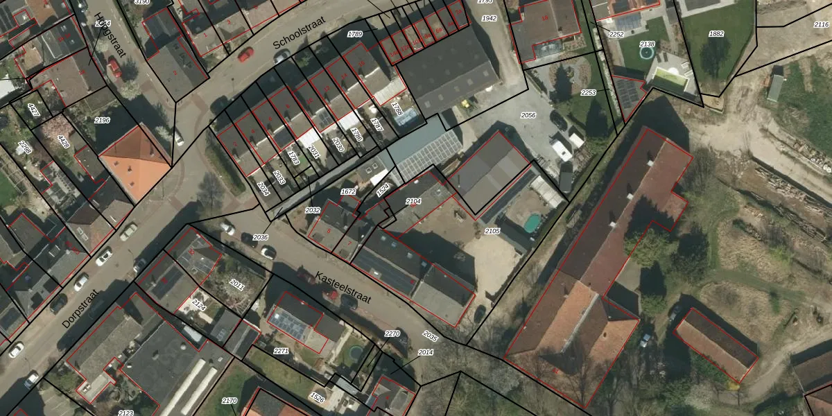 Kasteelstraat 9-a is gelegen op kadastraal perceel HOR02D2105. Deze kadastrale aanduiding is uniek en wordt gebruikt door het Kadaster om eigendomsrechten en andere zakelijke rechten vast te leggen. Het perceel maakt onderdeel uit van de kadastrale gemeente Horn.