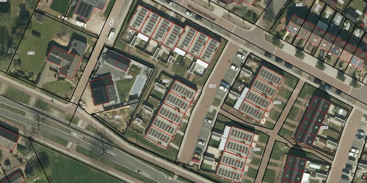 Het perceel waarop Maaslandstraat 57 staat heeft een oppervlakte van 3054 m². Dit is een zeer groot perceel. De perceeloppervlakte wordt geregistreerd door het Kadaster. Gedetailleerde informatie over de maten van dit perceel kunt u vinden in het rapport Kadastrale kaart met maatvoering van Maaslandstraat 57.
