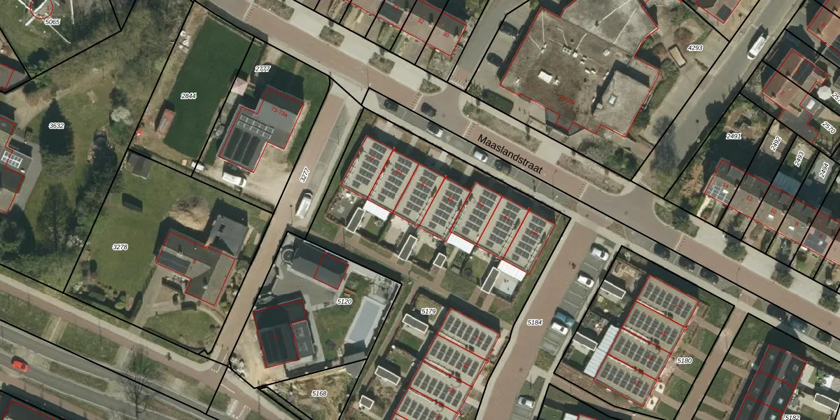 Het perceel waarop Maaslandstraat 67 staat heeft een oppervlakte van 3054 m². Dit is een zeer groot perceel. De perceeloppervlakte wordt geregistreerd door het Kadaster. Gedetailleerde informatie over de maten van dit perceel kunt u vinden in het rapport Kadastrale kaart met maatvoering van Maaslandstraat 67.