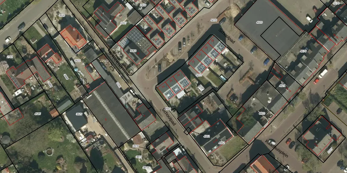 Het perceel waarop Schoolpad 18 staat heeft een oppervlakte van 1076 m². Dit is een zeer groot perceel. De perceeloppervlakte wordt geregistreerd door het Kadaster. Gedetailleerde informatie over de maten van dit perceel kunt u vinden in het rapport Kadastrale kaart met maatvoering van Schoolpad 18.