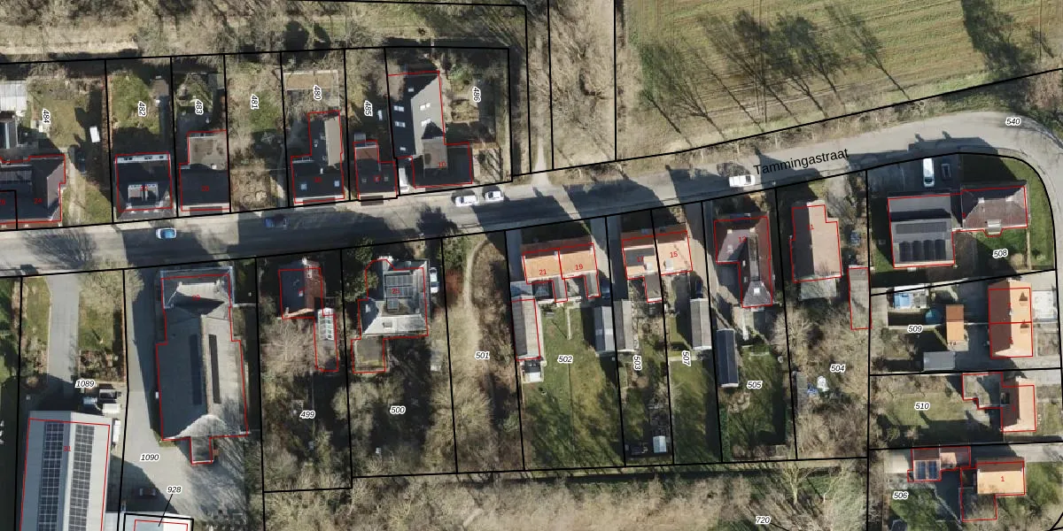 Tammingastraat 21 is gelegen op kadastraal perceel KTB00H502. Deze kadastrale aanduiding is uniek en wordt gebruikt door het Kadaster om eigendomsrechten en andere zakelijke rechten vast te leggen. Het perceel maakt onderdeel uit van de kadastrale gemeente Kloosterburen.