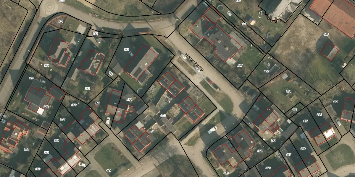 Hertenkamp 4 is gelegen op kadastraal perceel HSN02F231. Deze kadastrale aanduiding is uniek en wordt gebruikt door het Kadaster om eigendomsrechten en andere zakelijke rechten vast te leggen. Het perceel maakt onderdeel uit van de kadastrale gemeente Horssen.