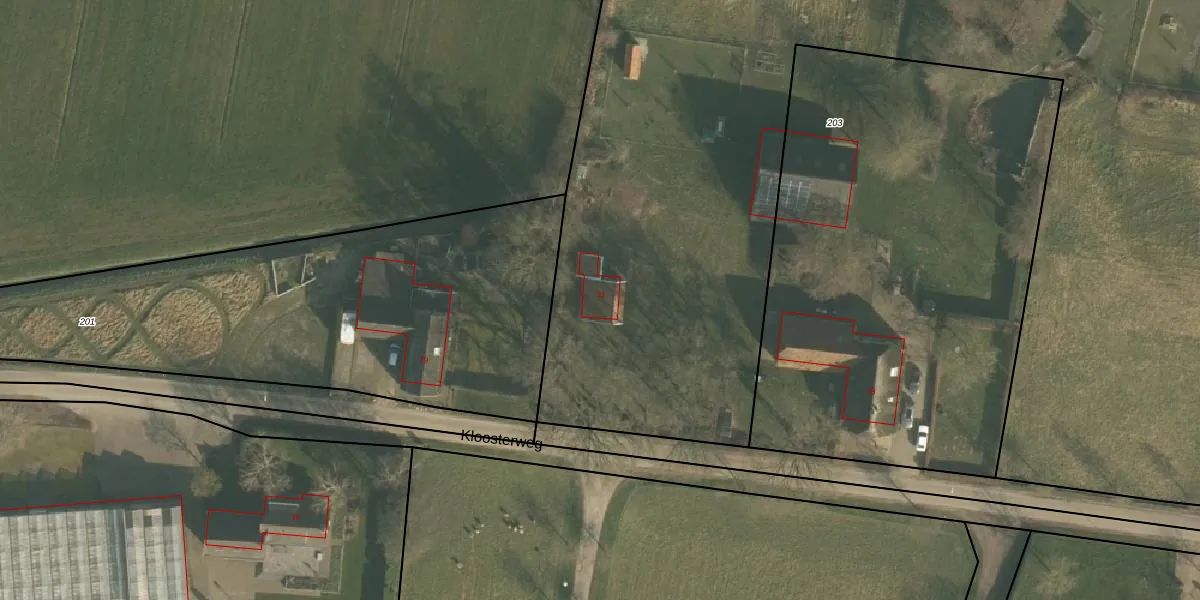 Het perceel waarop Kloosterweg 21 staat heeft een oppervlakte van 3,0 ha. Dit is een zeer groot perceel. De perceeloppervlakte wordt geregistreerd door het Kadaster. Gedetailleerde informatie over de maten van dit perceel kunt u vinden in het rapport Kadastrale kaart met maatvoering van Kloosterweg 21.