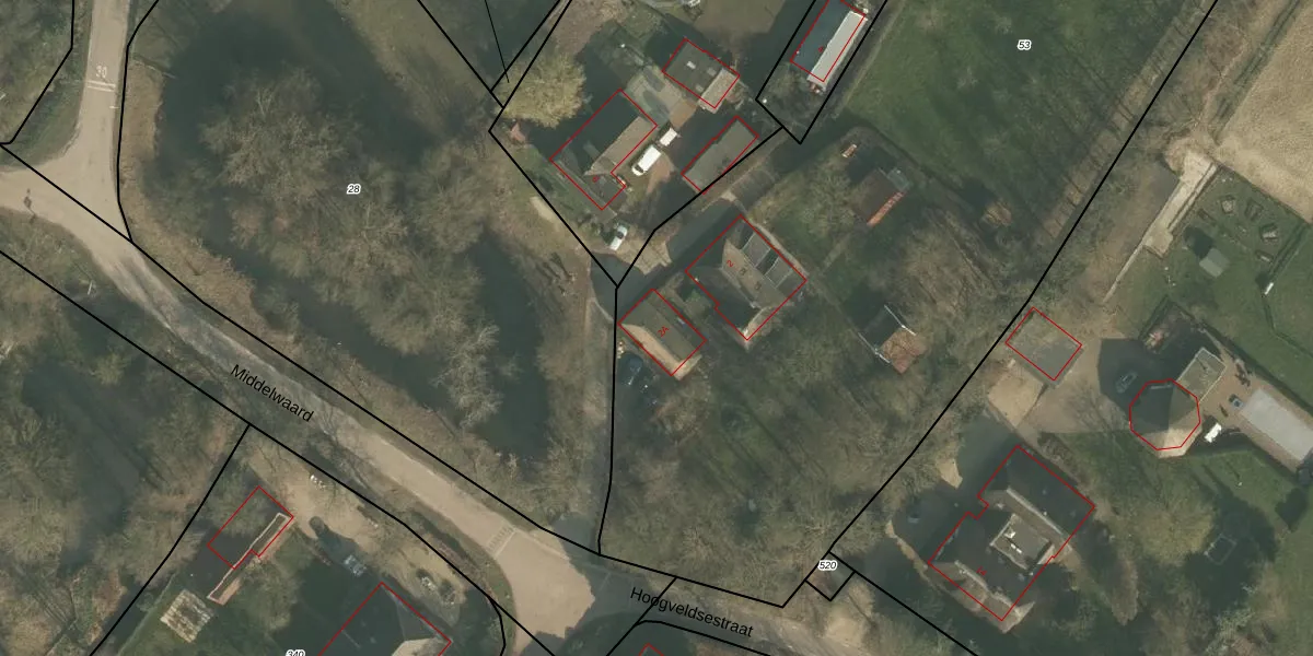 Het perceel waarop Middelwaard 2-A staat heeft een oppervlakte van 7010 m². Dit is een zeer groot perceel. De perceeloppervlakte wordt geregistreerd door het Kadaster. Gedetailleerde informatie over de maten van dit perceel kunt u vinden in het rapport Kadastrale kaart met maatvoering van Middelwaard 2-A.