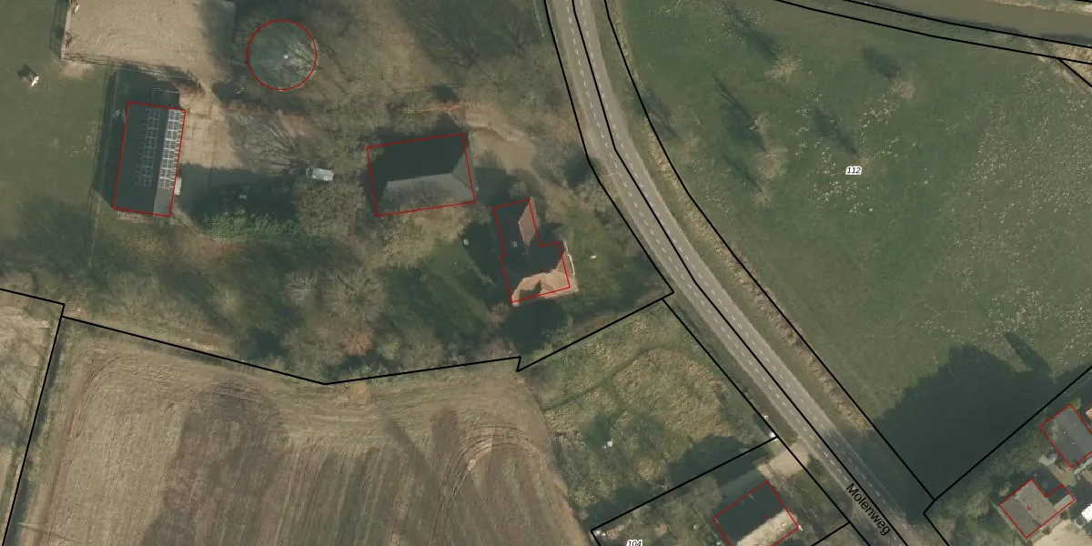 Het perceel waarop Molenweg 1 staat heeft een oppervlakte van 1,4 ha. Dit is een zeer groot perceel. De perceeloppervlakte wordt geregistreerd door het Kadaster. Gedetailleerde informatie over de maten van dit perceel kunt u vinden in het rapport Kadastrale kaart met maatvoering van Molenweg 1.