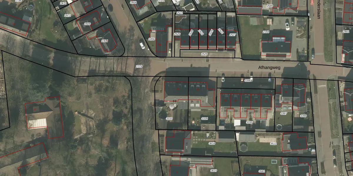 Afhangweg 33 is gelegen op kadastraal perceel HOR01M3333. Deze kadastrale aanduiding is uniek en wordt gebruikt door het Kadaster om eigendomsrechten en andere zakelijke rechten vast te leggen. Het perceel maakt onderdeel uit van de kadastrale gemeente Horst.