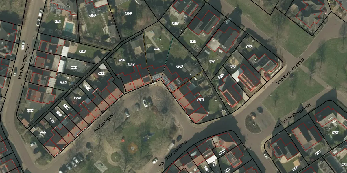 Averbodeplein 5 is gelegen op kadastraal perceel HOR01B8764. Deze kadastrale aanduiding is uniek en wordt gebruikt door het Kadaster om eigendomsrechten en andere zakelijke rechten vast te leggen. Het perceel maakt onderdeel uit van de kadastrale gemeente Horst.