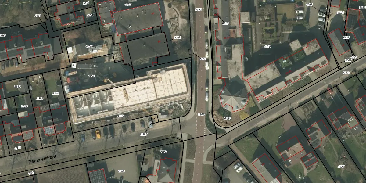 Het perceel waarop Bemmelstraat 2-a-1 staat heeft een oppervlakte van 1607 m². Dit is een zeer groot perceel. De perceeloppervlakte wordt geregistreerd door het Kadaster. Gedetailleerde informatie over de maten van dit perceel kunt u vinden in het rapport Kadastrale kaart met maatvoering van Bemmelstraat 2-a-1.