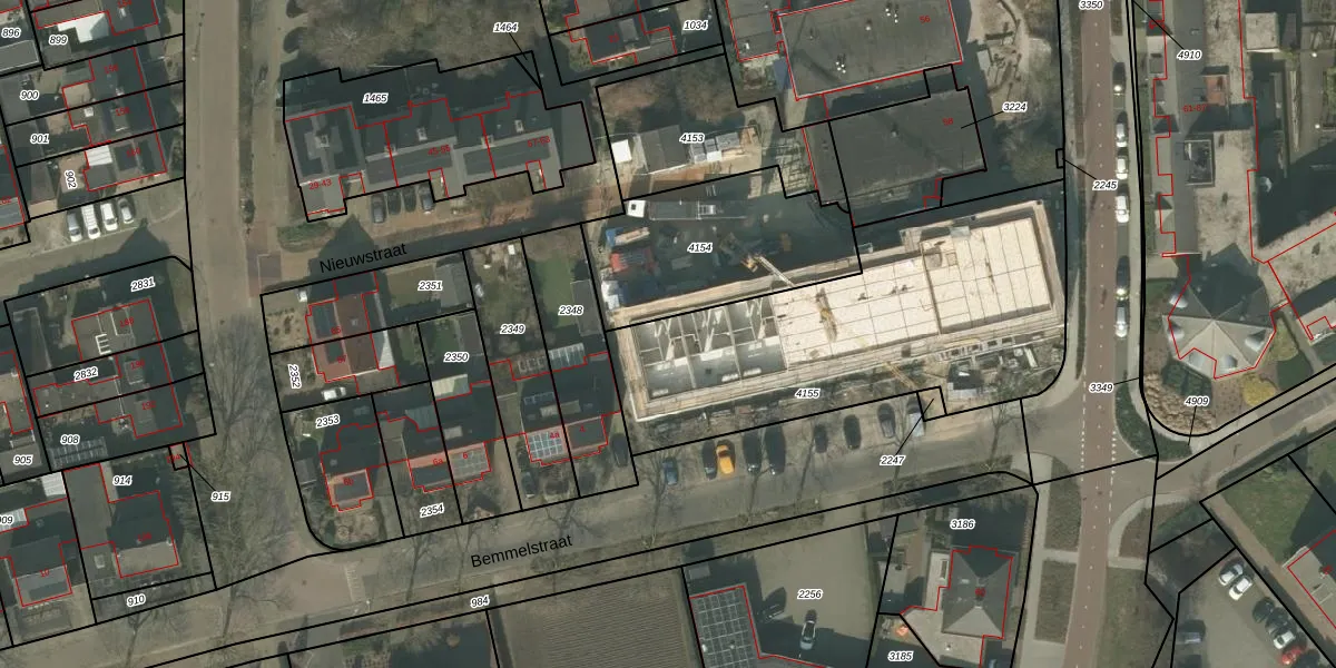 Het perceel waarop Bemmelstraat 2-c-9 staat heeft een oppervlakte van 1607 m². Dit is een zeer groot perceel. De perceeloppervlakte wordt geregistreerd door het Kadaster. Gedetailleerde informatie over de maten van dit perceel kunt u vinden in het rapport Kadastrale kaart met maatvoering van Bemmelstraat 2-c-9.