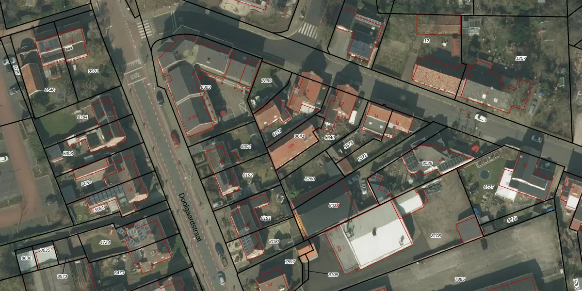Gebruik de zoekbalk of klik op een perceel voor informatie over de adressen binnen dit perceel.
