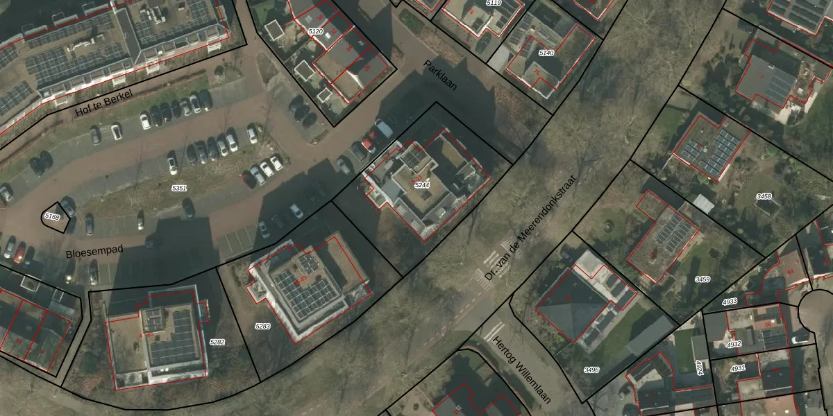 Het perceel waarop Bloesempad 17 staat heeft een oppervlakte van 898 m². Dit is een groot perceel. De perceeloppervlakte wordt geregistreerd door het Kadaster. Gedetailleerde informatie over de maten van dit perceel kunt u vinden in het rapport Kadastrale kaart met maatvoering van Bloesempad 17.