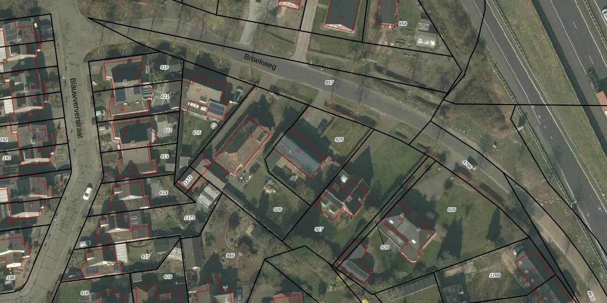 Het perceel waarop Broekweg 15 staat heeft een oppervlakte van 659 m². Dit is een groot perceel. De perceeloppervlakte wordt geregistreerd door het Kadaster. Gedetailleerde informatie over de maten van dit perceel kunt u vinden in het rapport Kadastrale kaart met maatvoering van Broekweg 15.