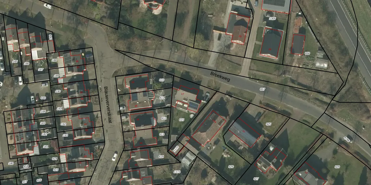 Gebruik de zoekbalk of klik op een perceel voor informatie over de adressen binnen dit perceel.