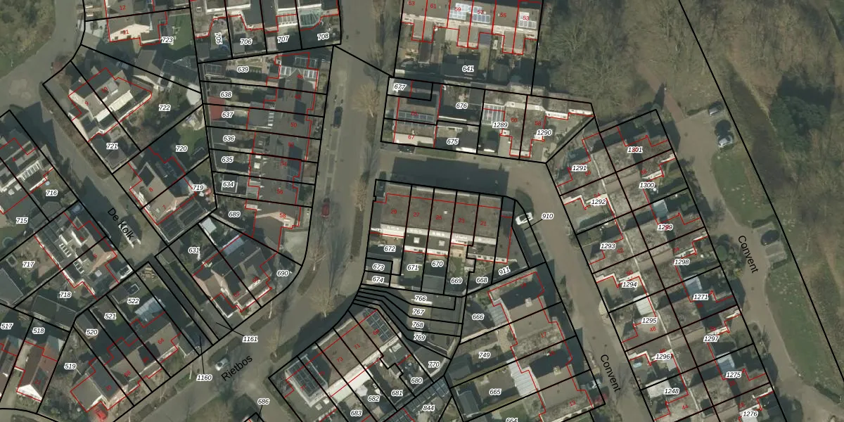 Het perceel waarop Convent 27 staat heeft een oppervlakte van 142 m². Dit is een middelgroot perceel. De perceeloppervlakte wordt geregistreerd door het Kadaster. Gedetailleerde informatie over de maten van dit perceel kunt u vinden in het rapport Kadastrale kaart met maatvoering van Convent 27.