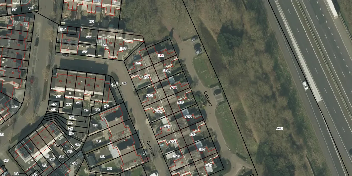 Het perceel waarop Convent 36 staat heeft een oppervlakte van 145 m². Dit is een middelgroot perceel. De perceeloppervlakte wordt geregistreerd door het Kadaster. Gedetailleerde informatie over de maten van dit perceel kunt u vinden in het rapport Kadastrale kaart met maatvoering van Convent 36.