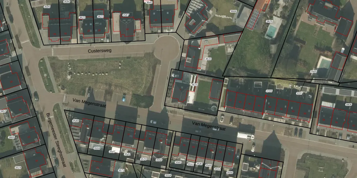 Custersweg 4 is gelegen op kadastraal perceel HOR01M3615. Deze kadastrale aanduiding is uniek en wordt gebruikt door het Kadaster om eigendomsrechten en andere zakelijke rechten vast te leggen. Het perceel maakt onderdeel uit van de kadastrale gemeente Horst.