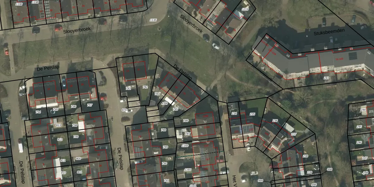 Het perceel waarop De Pelslap 21 staat heeft een oppervlakte van 252 m². Dit is een middelgroot perceel. De perceeloppervlakte wordt geregistreerd door het Kadaster. Gedetailleerde informatie over de maten van dit perceel kunt u vinden in het rapport Kadastrale kaart met maatvoering van De Pelslap 21.