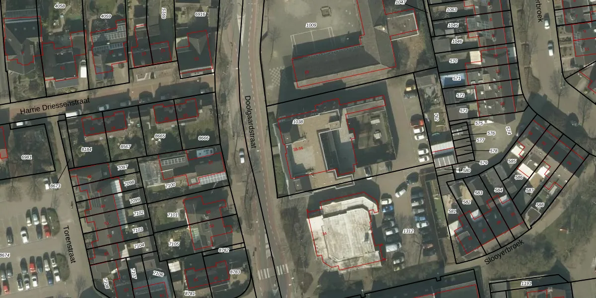 Het perceel waarop Doolgaardstraat 42 staat heeft een oppervlakte van 1614 m². Dit is een zeer groot perceel. De perceeloppervlakte wordt geregistreerd door het Kadaster. Gedetailleerde informatie over de maten van dit perceel kunt u vinden in het rapport Kadastrale kaart met maatvoering van Doolgaardstraat 42.