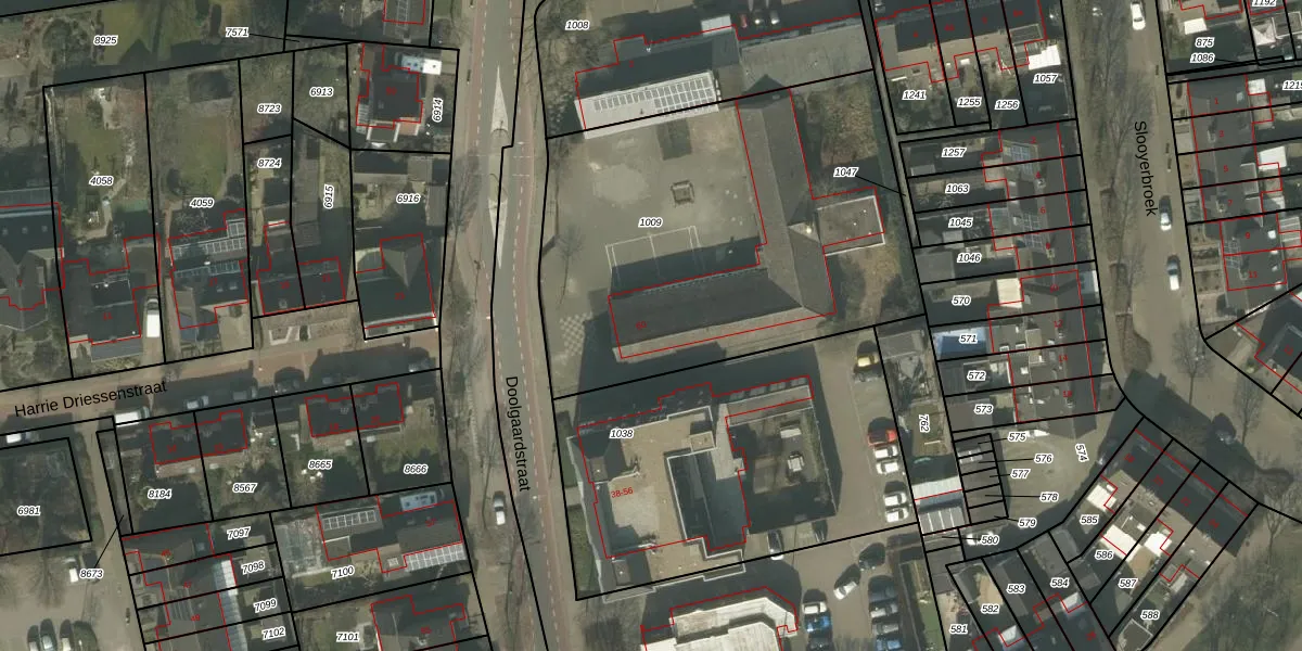 Het perceel waarop Doolgaardstraat 60 staat heeft een oppervlakte van 2185 m². Dit is een zeer groot perceel. De perceeloppervlakte wordt geregistreerd door het Kadaster. Gedetailleerde informatie over de maten van dit perceel kunt u vinden in het rapport Kadastrale kaart met maatvoering van Doolgaardstraat 60.