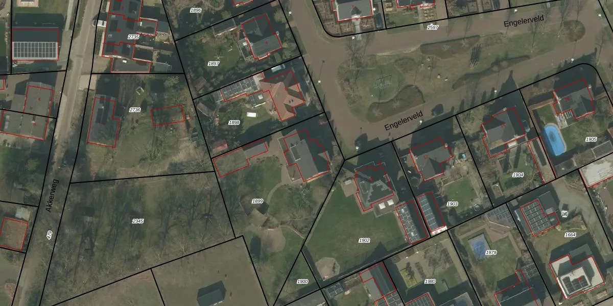 Het perceel waarop Engelerveld 8 staat heeft een oppervlakte van 1450 m². Dit is een zeer groot perceel. De perceeloppervlakte wordt geregistreerd door het Kadaster. Gedetailleerde informatie over de maten van dit perceel kunt u vinden in het rapport Kadastrale kaart met maatvoering van Engelerveld 8.