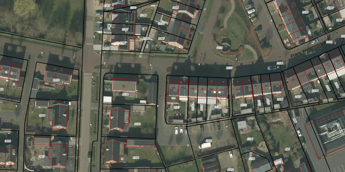 Het perceel waarop Frans Woltersstraat 36 staat heeft een oppervlakte van 363 m². Dit is een groot perceel. De perceeloppervlakte wordt geregistreerd door het Kadaster. Gedetailleerde informatie over de maten van dit perceel kunt u vinden in het rapport Kadastrale kaart met maatvoering van Frans Woltersstraat 36.