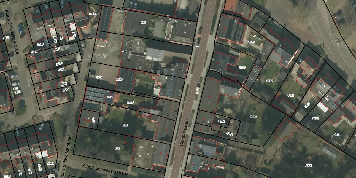 Het perceel waarop Gasthuisstraat 40 staat heeft een oppervlakte van 740 m². Dit is een groot perceel. De perceeloppervlakte wordt geregistreerd door het Kadaster. Gedetailleerde informatie over de maten van dit perceel kunt u vinden in het rapport Kadastrale kaart met maatvoering van Gasthuisstraat 40.