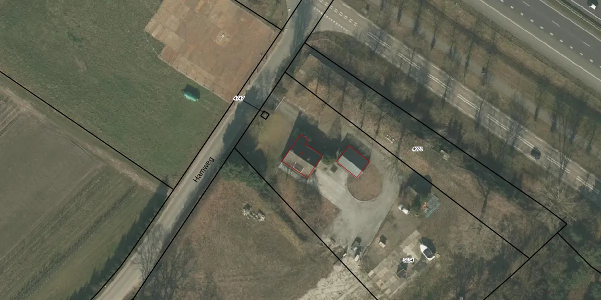 Het perceel waarop Hamweg 3 staat heeft een oppervlakte van 3566 m². Dit is een zeer groot perceel. De perceeloppervlakte wordt geregistreerd door het Kadaster. Gedetailleerde informatie over de maten van dit perceel kunt u vinden in het rapport Kadastrale kaart met maatvoering van Hamweg 3.