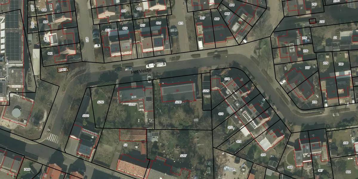 Het perceel waarop Het Veldje 18 staat heeft een oppervlakte van 863 m². Dit is een groot perceel. De perceeloppervlakte wordt geregistreerd door het Kadaster. Gedetailleerde informatie over de maten van dit perceel kunt u vinden in het rapport Kadastrale kaart met maatvoering van Het Veldje 18.