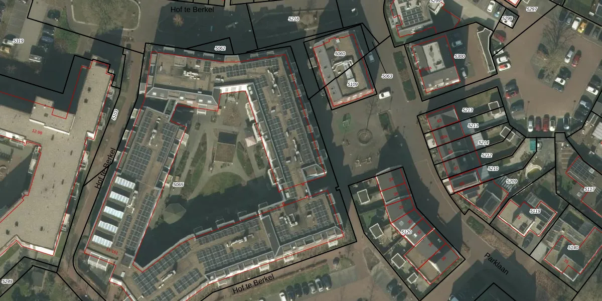 Het perceel waarop Hof te Berkel 65 staat heeft een oppervlakte van 5859 m². Dit is een zeer groot perceel. De perceeloppervlakte wordt geregistreerd door het Kadaster. Gedetailleerde informatie over de maten van dit perceel kunt u vinden in het rapport Kadastrale kaart met maatvoering van Hof te Berkel 65.