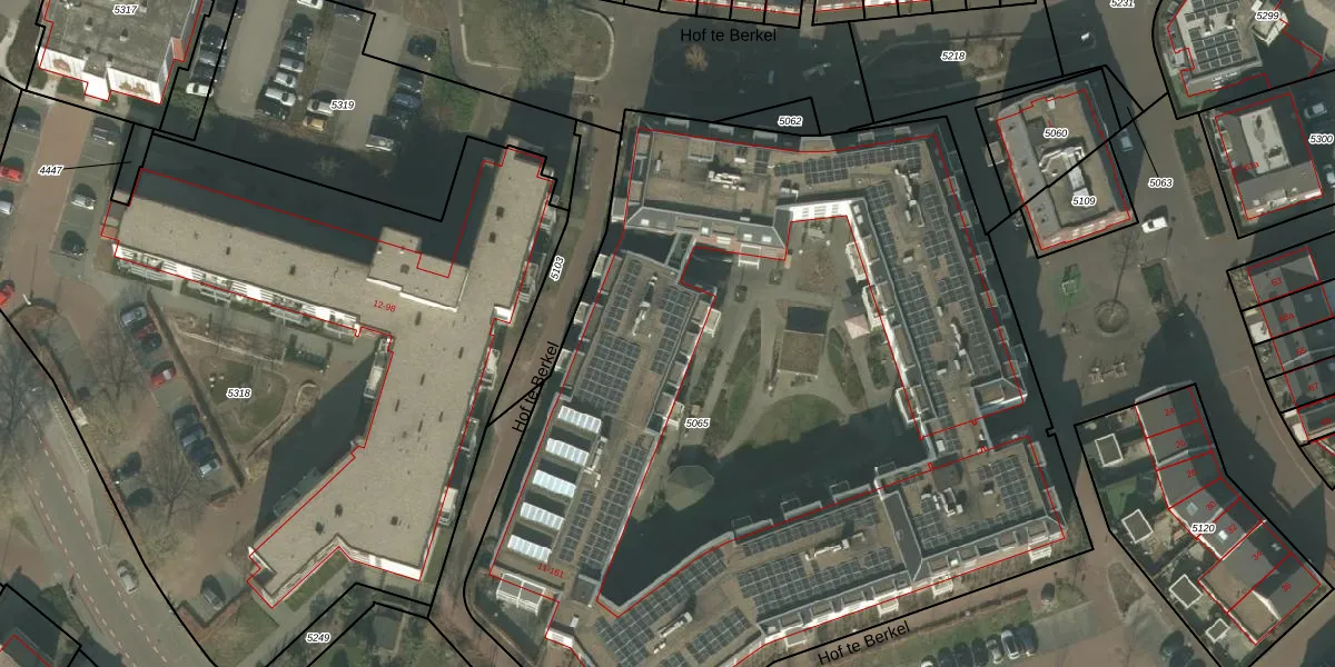 Het perceel waarop Hof te Berkel 89 staat heeft een oppervlakte van 5859 m². Dit is een zeer groot perceel. De perceeloppervlakte wordt geregistreerd door het Kadaster. Gedetailleerde informatie over de maten van dit perceel kunt u vinden in het rapport Kadastrale kaart met maatvoering van Hof te Berkel 89.