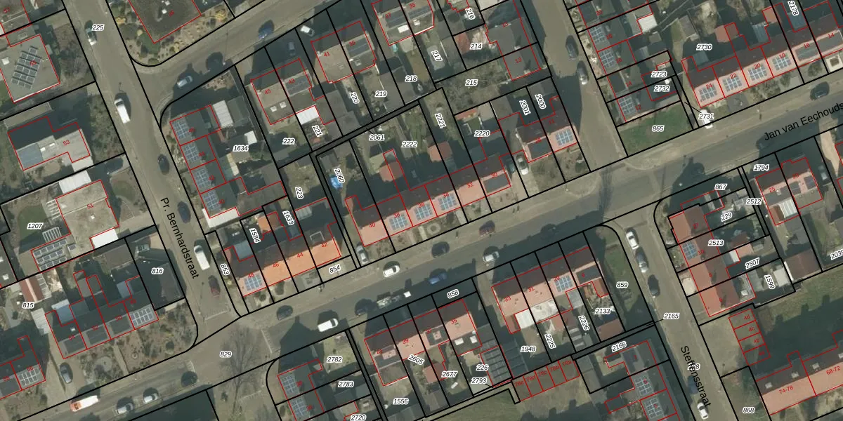 Het perceel waarop Jan van Eechoudstraat 36 staat heeft een oppervlakte van 557 m². Dit is een groot perceel. De perceeloppervlakte wordt geregistreerd door het Kadaster. Gedetailleerde informatie over de maten van dit perceel kunt u vinden in het rapport Kadastrale kaart met maatvoering van Jan van Eechoudstraat 36.