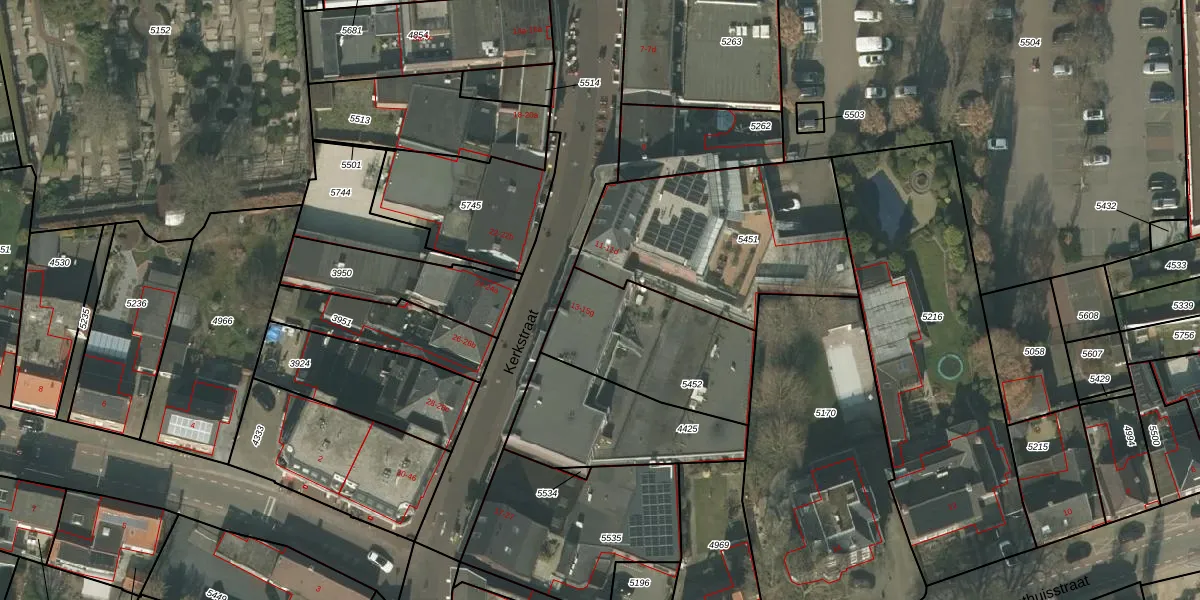 Het perceel waarop Kerkstraat 15 staat heeft een oppervlakte van 488 m². Dit is een groot perceel. De perceeloppervlakte wordt geregistreerd door het Kadaster. Gedetailleerde informatie over de maten van dit perceel kunt u vinden in het rapport Kadastrale kaart met maatvoering van Kerkstraat 15.